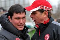 Uwe Erkenbrecher (rechts) im Gespräch mit Torwarttrainer Thorsten Albustin (Foto: mmb).