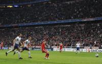 Englands Schrecksekunde: Wayne Rooney fällt, das stellte sich am Donnerstag raus, zwei bis vier Wochen aus. (Foto: firo)