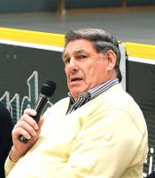Hannes Bongartz favorisiert eine Leitfunktion des größten Traditionsvereins VFB Bottrop. Hülsmanns hingegen will Grenzen überwinden. Seine Idee verfolgt vor allem einen ganzheitlichen Ansatz. Im Tenor mit den Podiumskollegen appelliert er an die Verantwortung der Eltern und an ein Bekenntnis zur lokalen Identität über den Vereinstellerrand hinweg. „Viele Eltern wissen nicht, was sie ihren Kindern zumuten. Schulische und berufliche Ausbildung wird hinten angestellt. Unser Konzept schließt daher die Begleitung des Menschen neben dem Fußball mit ein und hilft gegebenenfalls auch bei der Lehrstellensuche“, erläutert Hülsmann und wird von RWO-Scout Fred Bockholt unterstützt: „Es kann nicht sein, dass ein Wettbewerb auf Elternseite schon in frühen Jahren beginnt. Wie oft werden mir und auch einem Willi Landgraf die eigenen Kinder aufgedrängt mit den Worten ‚sonst geht er zum BVB oder nach Gladbach, die waren nämlich schon da’. Wenn die vermeintliche Karriere eines Zöglings dann nicht gelingt, müssen wir uns Vorwürfe wie heute abend anhören.“