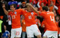 45 Sekunden nach dem Seitenwechsel folgte dann aber die kalte Dusche in Form der glücklichen niederländischen Führung. Nach einer Flanke von van Persie reihten sich in Dänemarks unbedrängter Abwehr Pleiten, Pech und Pannen aneinder. Poulsen köpfte den Ball an den Rücken von Daniel Agger - von dort aus tropfte der Ball an den Innenpfosten und ins eigene Tor.