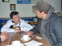 An Hilbring soll heute aber nichts verdient werden, die obligatorische Bratwurst spendiert „Plagiator“ Neumann höchstselbst. „Superlecker und superheiß“, lautet Marlons fachmännischer Kommentar und der RS-Mitarbeiter ärgert sich, dass Hilbring junior noch einige Jährchen auf dem Buckel fehlen, um für uns den Bier- und Bratwursttest zu übernehmen. „Glamourös“ oder „funky“ geht es an der Lohrheide aber mitnichten zu, hier fließt kein Schampus – für Autofahrer Hilbring noch nicht mal Pils, sondern Kaffee. Auf dem Weg zur Tribüne hat die Reisegruppe etwas gebummelt und verpasst das frühe Führungstor durch Christian Melchner. Nicht so tragisch, schließlich fallen noch drei weitere – und trotz des Endergebnisses von 2:2 hat der Wattenscheider 15-Punkte-Vorsprung Bestand.