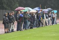Damit hatte wohl niemand gerechnet, dass gerade einmal knapp 50 Fans der Nationalmannschaft beim freien Training zusehen wollten. Doch die, die da waren, waren hartnäckig, obwohl das Wetter es nicht gut mit ihnen meinte. Zwei Stunden ließ Silvia Neid trainieren und immer dann, wenn der Regen ein bisschen nachließ oder stellenweise einmal ganz aussetzte und die Zaungäste ihren Schutz vor dem Naß zur Seite legten, öffnete der Himmel wieder seine Tore.