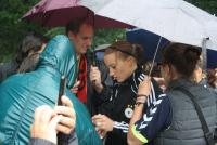 Danach war das Training aber auch vorbei - die Fans erlöst. Aber auch nur fast. Denn niemand wollte die Bezirkssportanlage natürlich ohne Autogramm verlassen. Durchnässt und geduldig blieben die Nationalspielerinnen vor ihren Fans stehen.