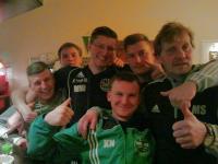 Die „Kekeys“ mitsamt Trainer (rechts) und Mitspielern nach dem 8:1-Erfolg: Kevin Niedrig (vorne) traf doppelt und Torhüter Kevin Schäffler (2. von rechts) hinterher per Elfmeter.