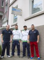 Der FC Kray zu Gast beim Handarbeit-Team: (v.l.n.r. Dennis Masuhr, Fatmir Ferati, Timur Karagülmez, Costas Karamanlis)