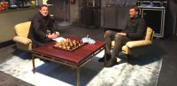 Manuel Neuer (r.) im Gespräch mit FUNKE-Sport-Chefredakteur Pit Gottschalk (l.) in einer Fotokulisse für Sony-Werbeaufnahmen. Foto: sportbibel.de