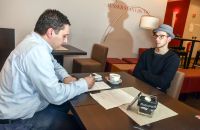 Leon Goretzka (rechts) im Gespräch mit unserem Reporter Thomas Tartemann.
