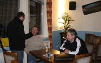 Auch die Kicker (hier J.Thimm lks.) schauen mal zum Smalltalk im Clubhaus vorbei