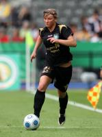 Mindestens genauso beachtlich ist der Karrieresprung von Popp, die mit der Silber-Medaille bedacht wird. In ihrer ersten Saison bei den „Löwinnen“ etablierte sie sich als Stammspielerin, dabei kickte sie im vergangenen Jahr noch einige Klassen tiefer – beim 1. FFC Recklinghausen. Auf das Talent der heute 18-Jährigen war sogar Olympique Lyon aufmerksam geworden. Kein Wunder, dass sie nach dem UEFA-Women`s Cup-Finale vor 28.112 Zuschauern in der MSV-Arena – Popp war die jüngste Akteurin auf dem Platz – gestand, dass ihr die Kniee geschlottert hätten. Im Berliner Olympiastadion erzielte sie gegen Turbine Potsdam den Treffer zum 7:0-Entstand. „Viele hatten sie nicht auf dem Zettel“, erinnert sich Voss. Popp belehrte die Ahnungslosen eines Besseren. Und der FCR wird auch in Zukunft noch seine Freude an den Nachwuchskickerinnen haben, denn die Verträge laufen zumindest noch bis 2011.