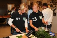 Martina Voss-Tecklenburg und Alexandra Popp bei der Salat-Zubereitung (Foto: Christian Mittelbach).